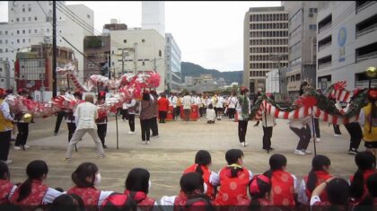 長崎伝統の「龍踊」を体験しました。
