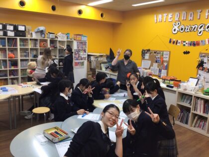ハロウィンパーティー 中学高校 Posted date:2025.11.06 10月28日(火)に、在校生のハロウィンパーティーがiLoungeで開催されました。 ネイティブの先生方と生徒が一緒にテーブルゲームやお絵描き等で仲良く楽しく遊んでいました。