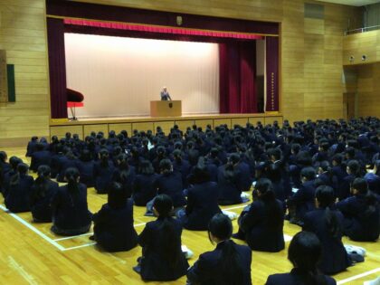 校長講話では、今年の漢字一文字として「熊」が紹介され、社会問題となった熊の出没を題材に、人と自然、動物との共存について考えるお話がありました。