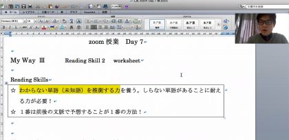 高校 Posted date:2020.05.08 普段の学校生活と変わらない時間割で、オンライン授業を本校は実施しています。 写真は高校3年生の英語の様子です。教科書のテーマを発展させ、インターネットで使われているサイトの英文を基にした、先生お手製のワークシートを使用しています。 知らない単語をあえて説明しないなど、難易度を高くすることで英文により集中して取り組むように工夫しています。生徒たちは英文の中の手がかりを基に、話し合いながらワークシートに取り組みました。 ブログ一覧に戻る