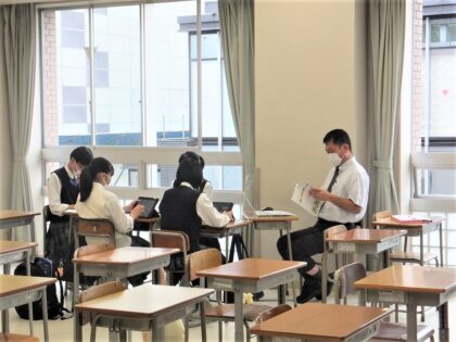 コロナ流行以降、大学の説明などはオンラインでおこなわれていますが、今回は久しぶりに生徒たちが実際にキャンパスを訪れる「キャンパス見学会」として開催され、全員が参加しました。