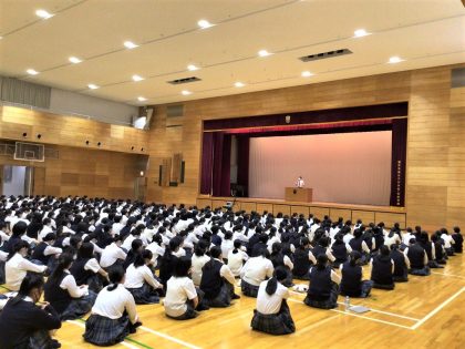 今回は高校生がアリーナで、中学生が各教室でそれぞれ参加しました。