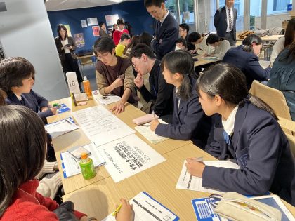 高校1年生登校日 高校 Posted date:2020.06.08 6月8日(月)より、オンライン授業と対面授業の併用期間となります。 今週は、各学年で週1回登校して授業を受けます。 本日は高校1年生の登校日でした。教室ではなく、校内の広いスペースを利用して授業をおこないました。