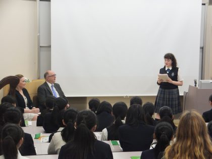 また、海外滞在経験がありレシテーション大会には参加できない生徒の発表、麴町学園に1年留学している生徒の発表もありました。