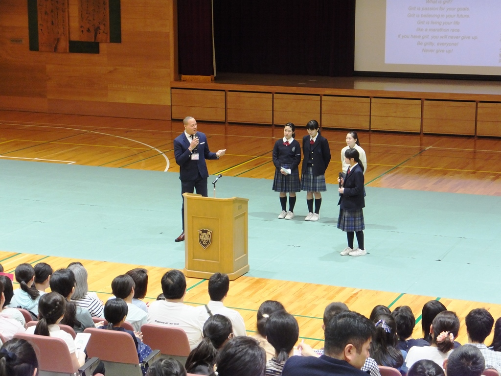 当日は、まず受験生・保護者ともに、アリーナにて本校生徒の発表をお聞きしました。